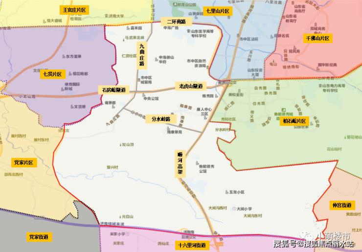 九曲片区东至二环南路、省道103、兴隆山与市中区边界,西至马武寨山,北至原二环南路,南至绕城高速南环线,用地面积约28.01平方公里。片区未来将塑造成一个宜业、宜家、宜游的山水新区,打造成为带动市中南部地区发展的新引擎。