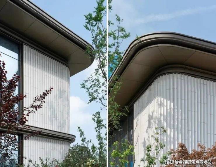 同时通过精准控制铝板与玻璃的分缝及交接构造节点,保证铝板与玻璃的自然转合交接,使建筑造型具有自由流淌的曲面感,彰显品质与美学的高度融合。