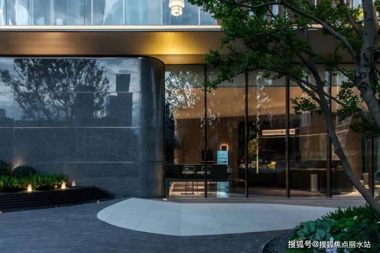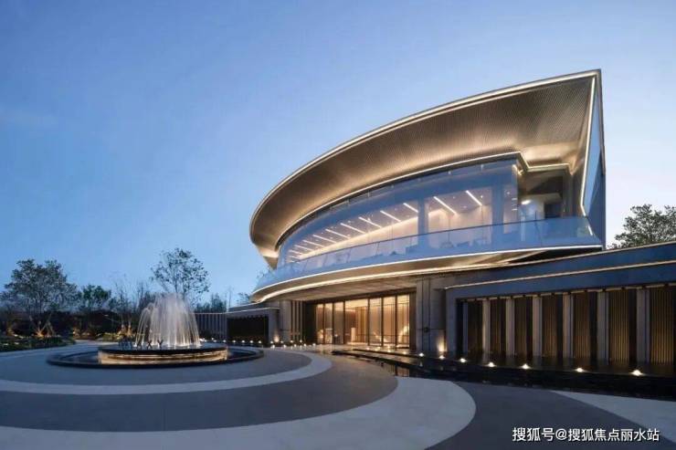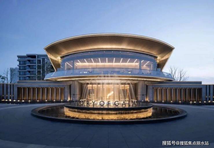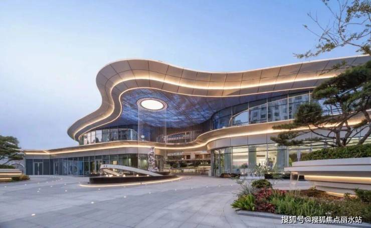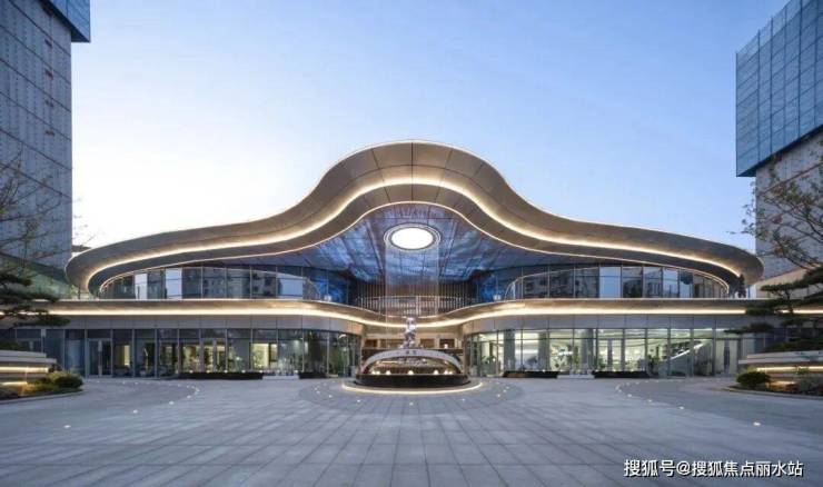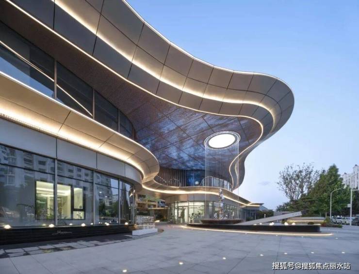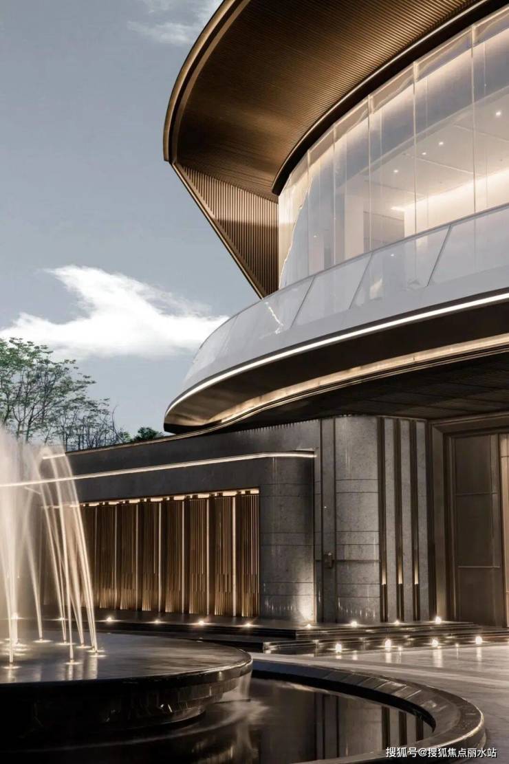 建筑主入口的圆角呈现的是一种打开的姿态,将自然弯曲曲线融入立面,超9米外挑曲线造型,超大挑高,强化了酒店式礼遇感。