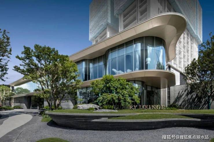 建筑立面从极简美学中汲取灵感,大面采取弧形曲线勾勒,利用弧度变化展现轻盈舒展的气质。