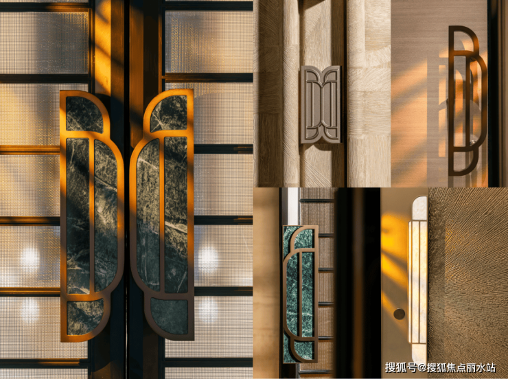 我们确实能看到大面积暖色系石材、弧形元素、项目整体的气质是松弛温暖的