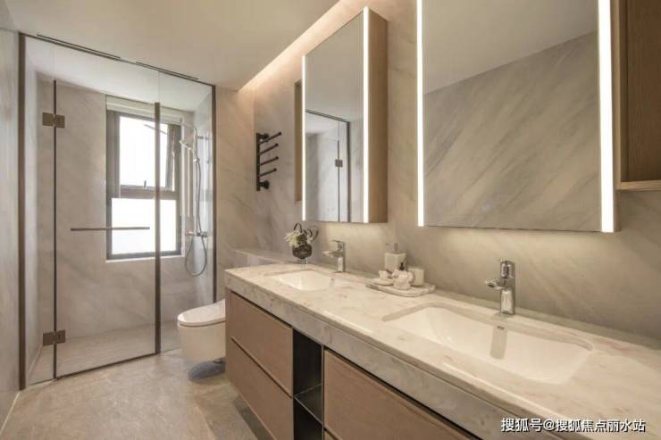 主卧空间更是奢阔,以往南京这个户型段的产品,几乎没有能做主卧双台盆的。但龙湖北城央璟颂做到了,直接将尺度拉满。