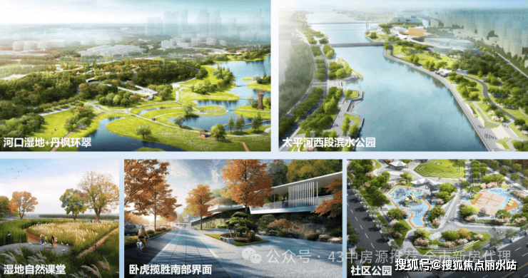 片区以“两河汇集、三山拥翠、六园环芯、十二集景”为生态构架,打造“5分钟入园、10分钟亲水、15分钟进山”的新森活模式。项目北侧邻卧虎山公园与太平河生态绿廊,西侧为社区公园,构建家在风景里,人在画中游的诗意生活。