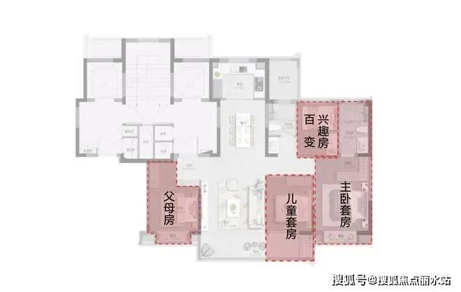 比如北向独立书房,可以打造为全家的志趣空间;而南向双套房,则可继续作为男女主人和孩子的向阳空间;同时,另一间南向次卧则变身为父母房,既保持一定“距离”,又能同住而不影响父母的作息时间。让每个家人都能各得其乐,颐享三代同堂的幸福时光。