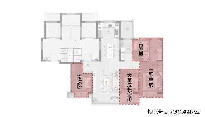 最重要的是,与主卧相邻而产生的心理亲近感,则将“二宝”降生对大宝带来的“独宠剥夺感”大大降低,同时长辈/保姆独立空间带看也能更为周到。