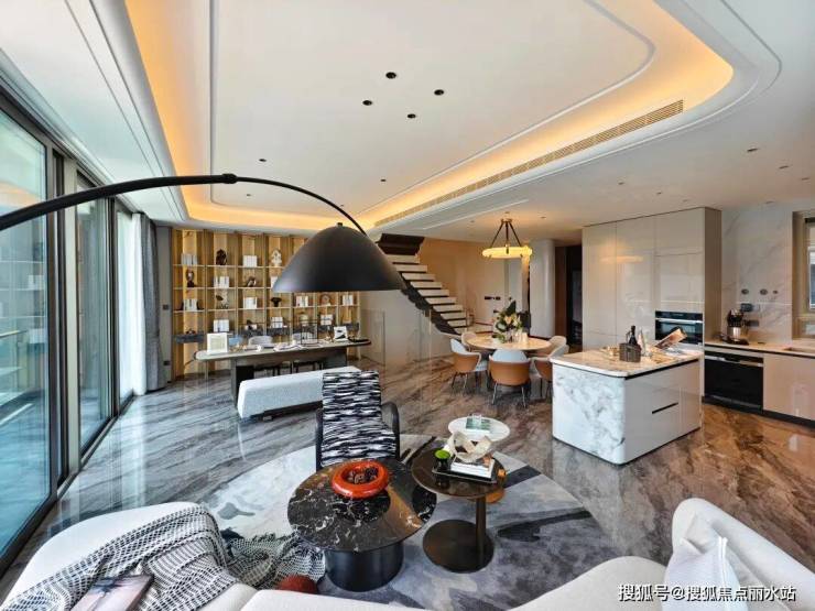 一层的客厅层高约达3.6米,约63平的家庭会客厅,可放下家里的阅读室、健身房,更是孩童的室内游乐场。