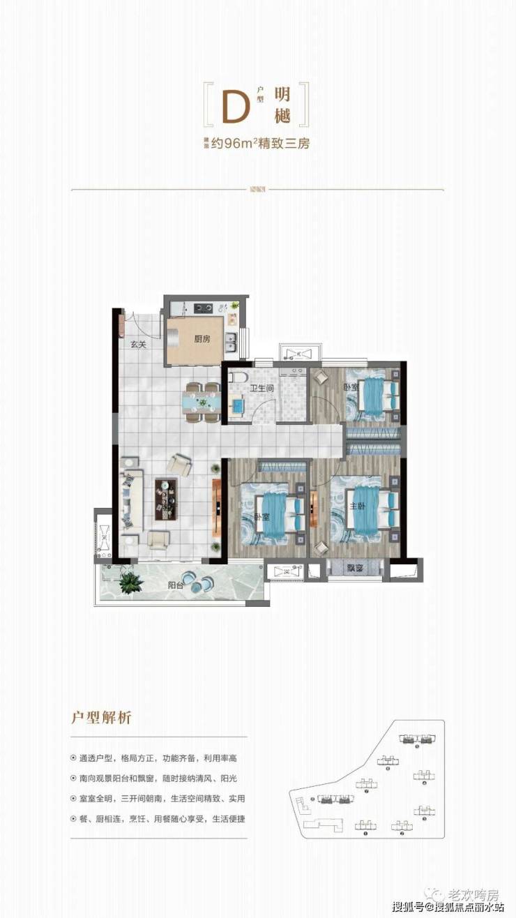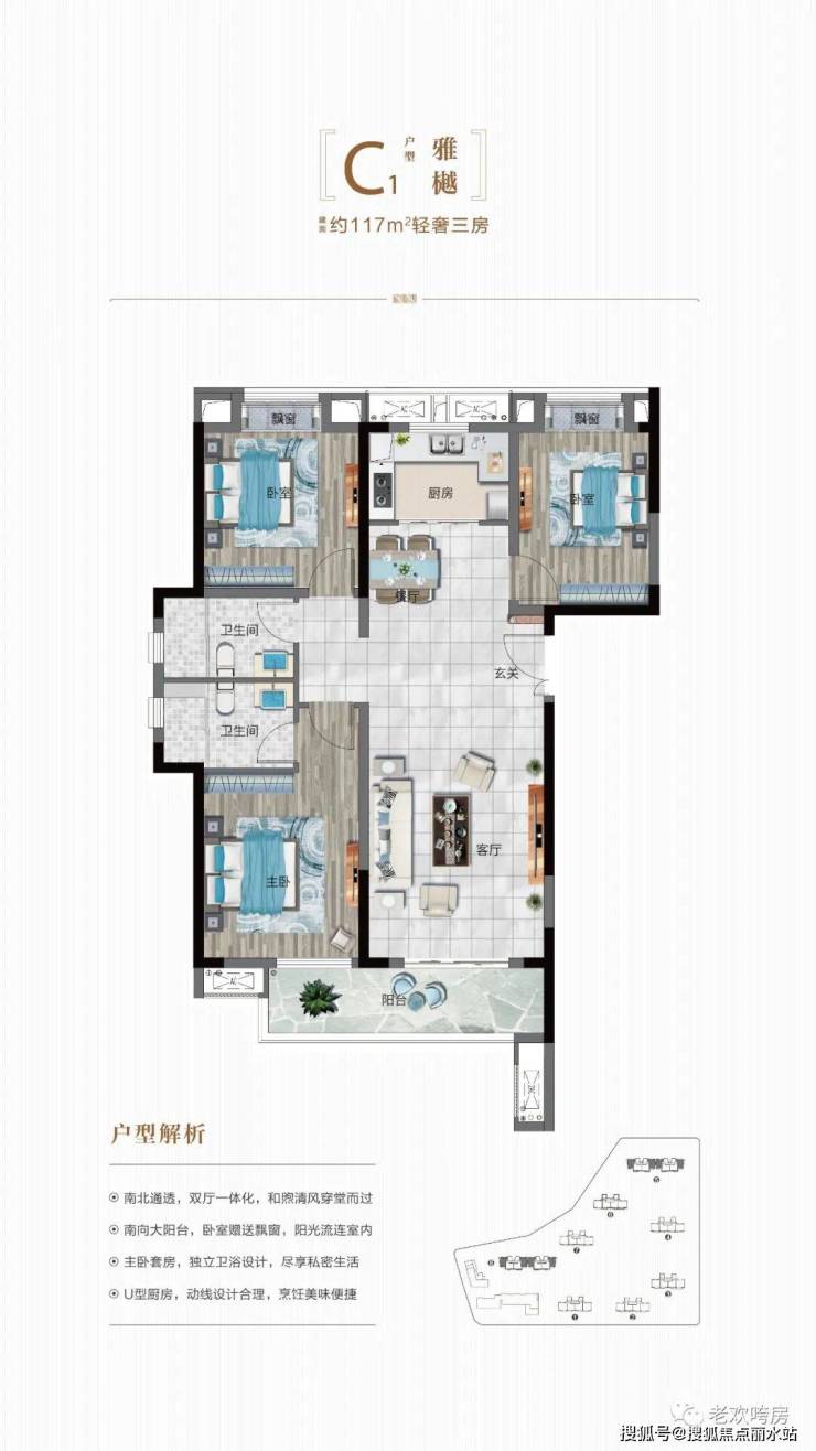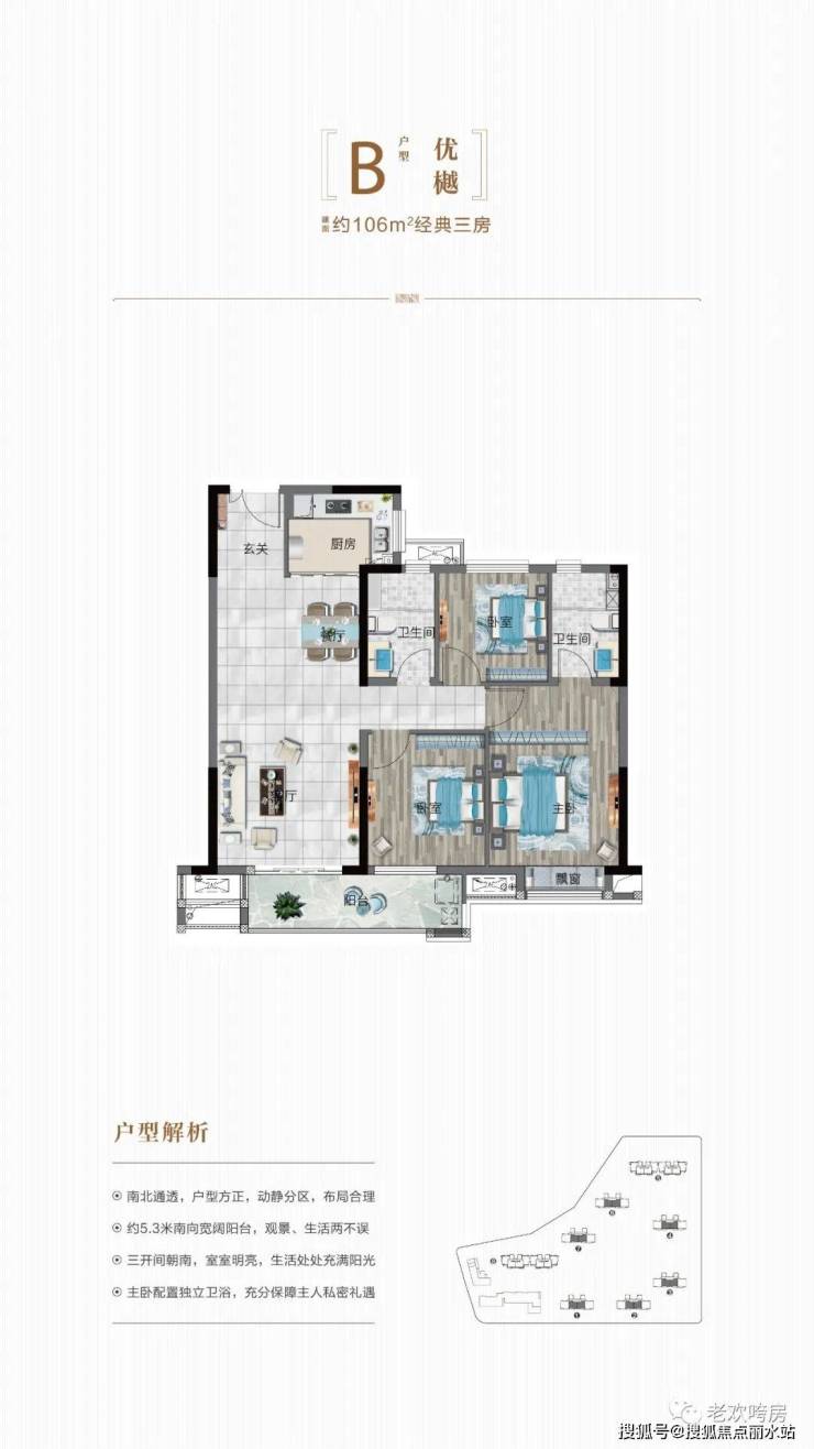 该户型南北通透,三开间朝南,低公摊、高利用率。