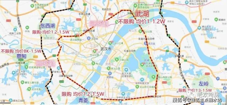再来看同为均价1.2W+区域,蔡甸、左岭远在四环外;东西湖接近四环,基础配套仍较匮乏;