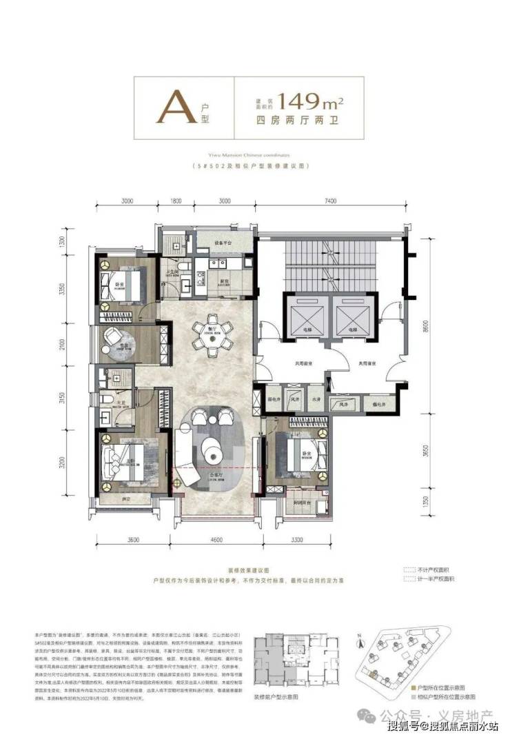 4、在售户型:149平 四室两厅两卫 一梯一户精装修交付