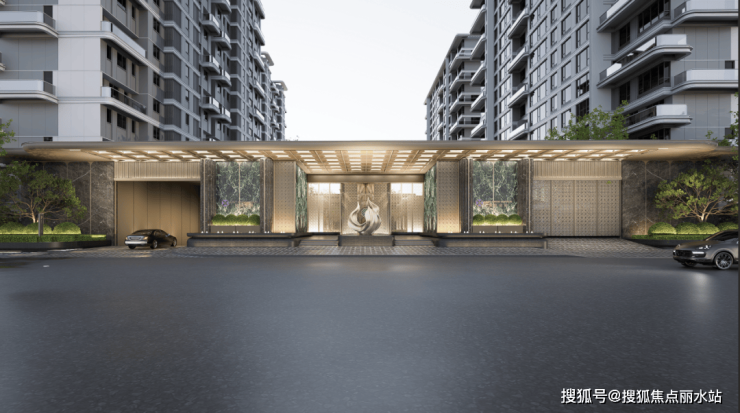 恢弘仪式大门气场拉满,新中式设计搭配铝板线条,堪比南京、杭州顶豪配置。