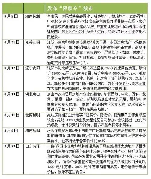 而9月9日,湖南株洲多家房企被约谈,问题直指开发商大幅降低商品房售价,被视为另类“限跌令”。