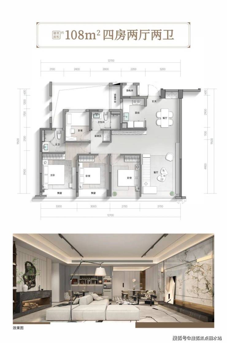 建面约108-139㎡低密高层产品,在保亿的精心设计下,更是迎来了相对于传统高层产品的全面迭代升级。约108㎡中间套突破传统格局,以约12.7m南向采光界面重构阳光生活尺度,四室两厅全能空间满足家庭全周期需求。