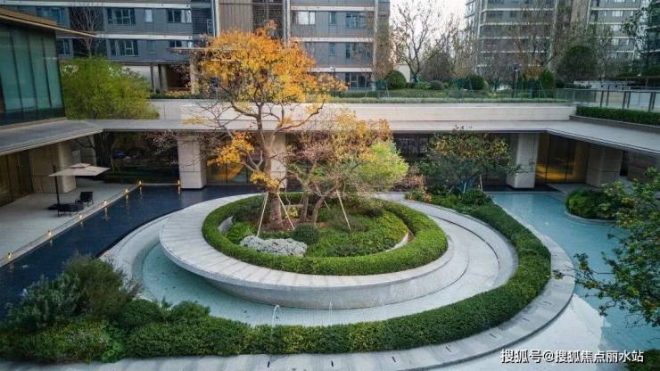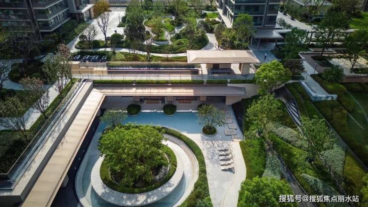 约10000㎡的下沉式中央景观"翡翠之钻"是整个园林的核芯,流水潺潺间,潋滟花草与名贵树木层次交错,步步皆景的静谧与舒适,仿佛闯进了隐奢的四季酒店。