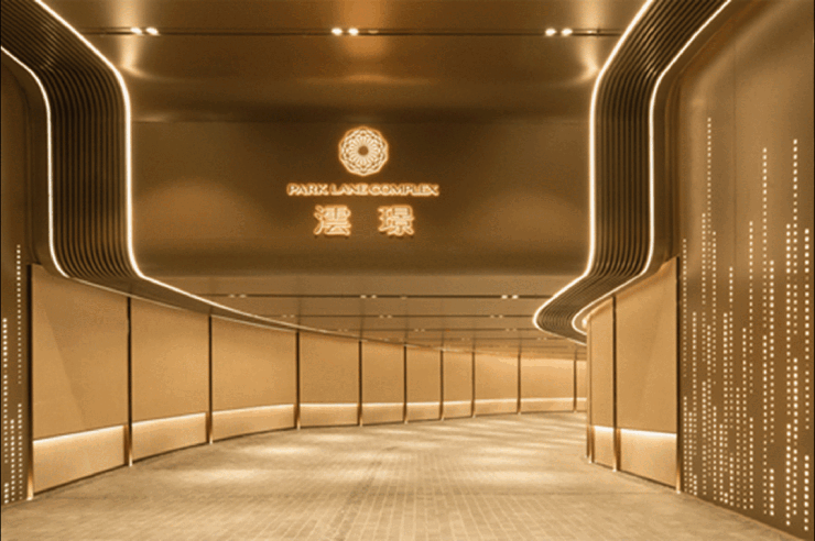 由GOA大象设计总裁陆皓亲自操刀,堪称一场视觉革命。区域内唯一采用铝板+玻璃幕墙打造的公建化立面,双T非对称天翼设计,深邃灰蓝色玻璃留白,勾勒出游艇般舒展的线条。