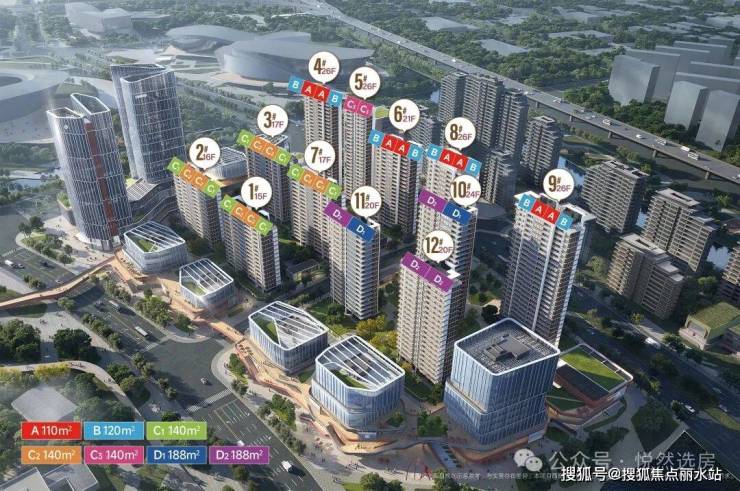 规划建面约 110-188㎡瞰江大宅,户型包括 110 平方米、120 平方米、140 平方米、185 平方米和 188 平方米等多种面积段。