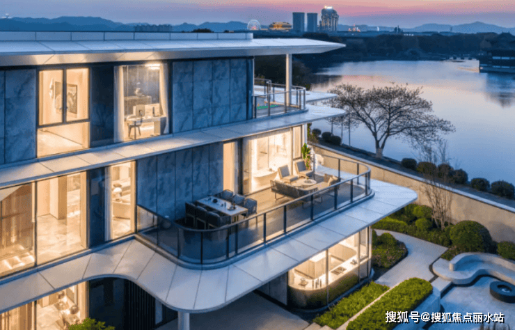 建筑设计:采用航空级铝板立面搭配 12mm 超白玻幕墙,窗墙比达 0.6,首创长三角住宅采光纪录。建筑设计灵感源于白鹭展翅,立面提取舒展线条,还原白鹭形态,转角采用超大弧形曲面铝板挑檐与定制曲面落地玻璃,造型优美且视野绝佳。