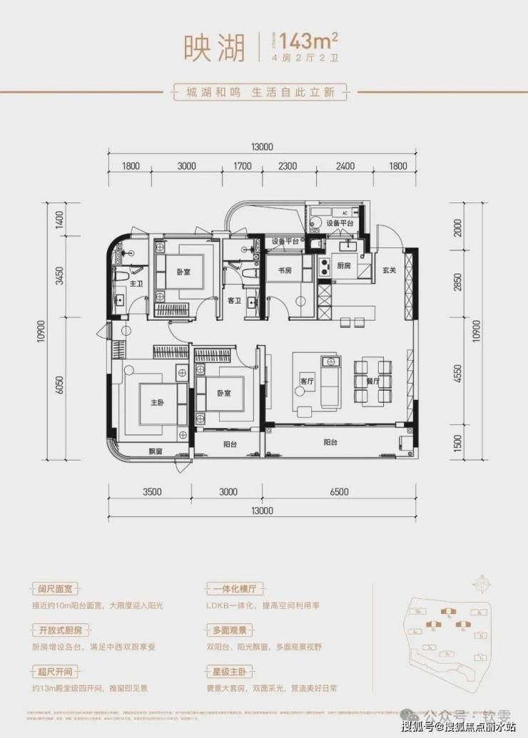 143m²四房两厅两卫:主要分布在7#8#12号楼的边套户型,位于小区中心位置,享受完整的景观资源,南向13米左右面宽,大尺度迎入阳光,中西双厨加餐客厅LDK一体化空间约40平,提高空间利用率,享受大尺度生活空间。