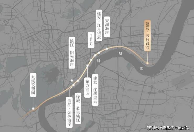 这几年,杭州城市版图的发展中,正沿着钱塘江向东生长,项目位于东部湾新城在2024年也被纳入了,钱江新城二期拓展区从地理位置上看,是位于之江路豪宅带上。正是因为他南向面江的地理位置,也有这样一句话,‘一条之江路,半部豪宅史”之江路是杭州豪宅林立的一条城市沿江主干道,从南星桥到江河汇再到钱二也是豪宅林立,像九溪玫瑰园,蓝色钱江,金色海岸,IFC等,均是杭州知名的豪宅标杆,更难得珍贵的是钱塘江边,超大的低密社区。