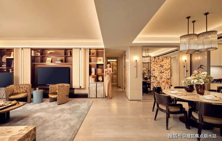 回到室内。作为四代宅,江宁金茂府在空间尺度上进行了大胆创新,户户有露台全部南北通透,实际使用面积超100%。180㎡、220㎡户型直面东侧九龙湖生态景观,未来可享受270°环幕视野。最大约22㎡的“空中岛屿”露台,通过东西、南向的错层排布,最大程度保护了人居隐私。