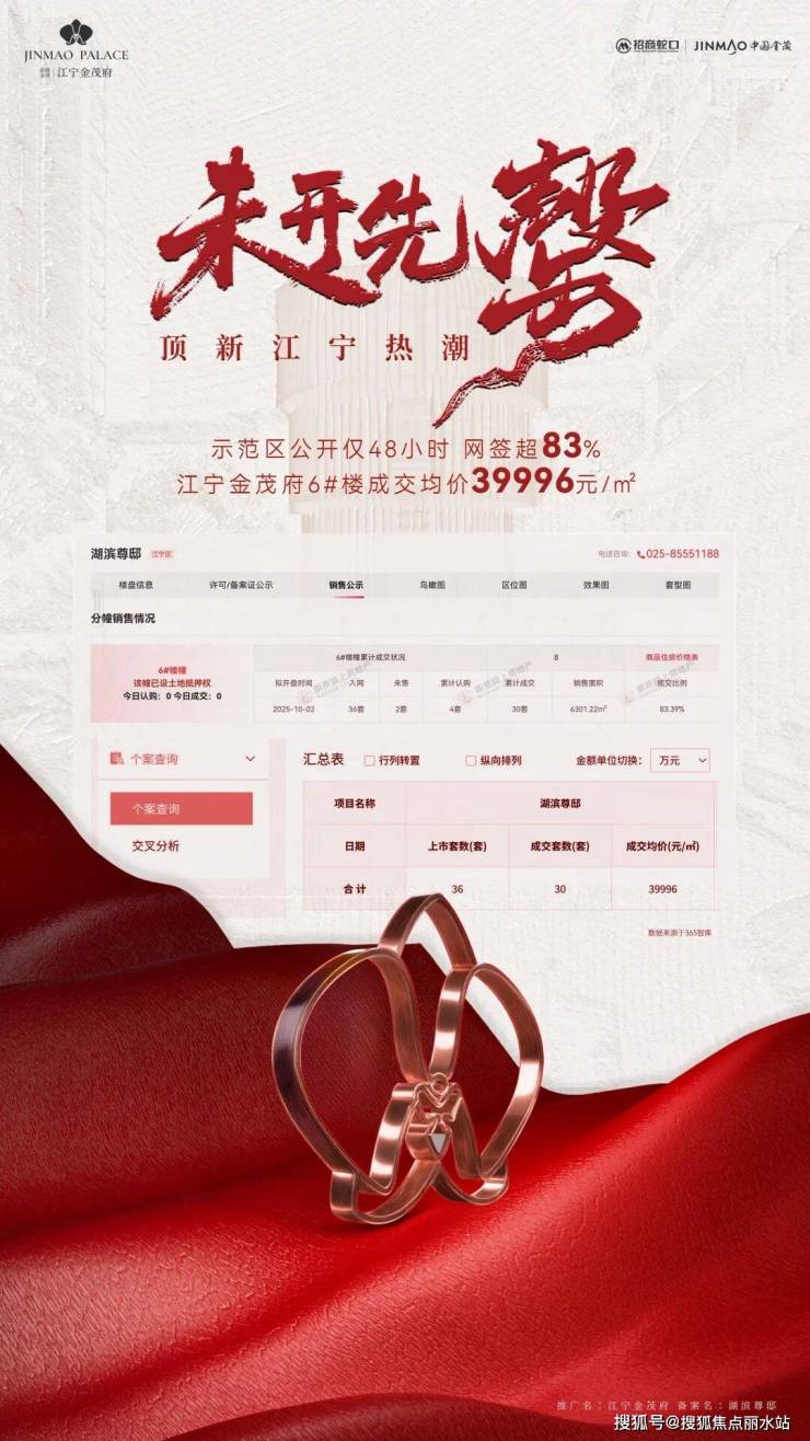 据不完全统计,这个“金九银十”,南京楼市8大板块近30家纯新盘集中亮相。当多数项目还在为蓄客绞尽脑汁时,江宁金茂府不仅“未开先开”,在示范区、样板间公开前抢先领证,仅凭湖畔会客厅吸引4000组客户到访、800组客户验资;更是“未开先罄”,示范区尚未正式开放,首开6号楼房源已迅速售罄,48小时网签率超83%,成交均价稳居4万元/㎡高位。