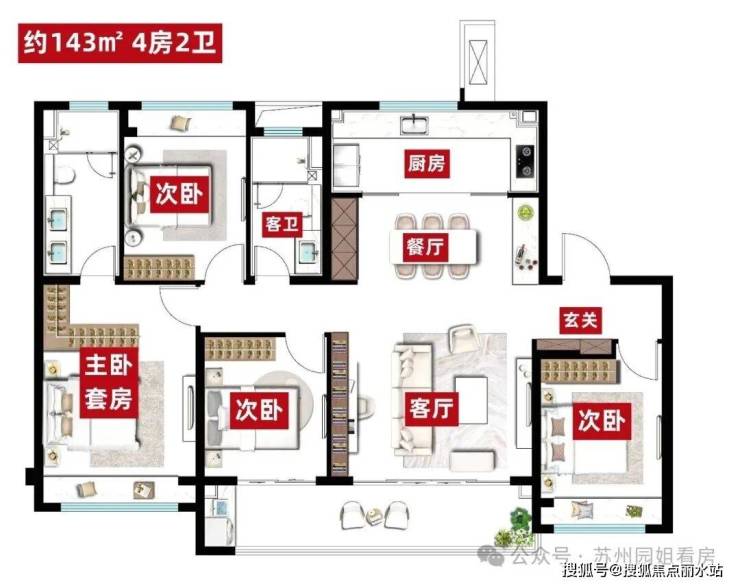 户型配置也非常纯粹,建面约128/143㎡2个户型,全是大4房,高得房率。