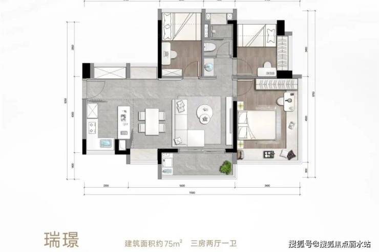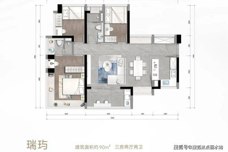 松湖瑞府推出建面约75-118平的三至四房,面积段设置虽偏向刚需,但楼市君发现,有部分改善户型设计理念被下放至该项目内。