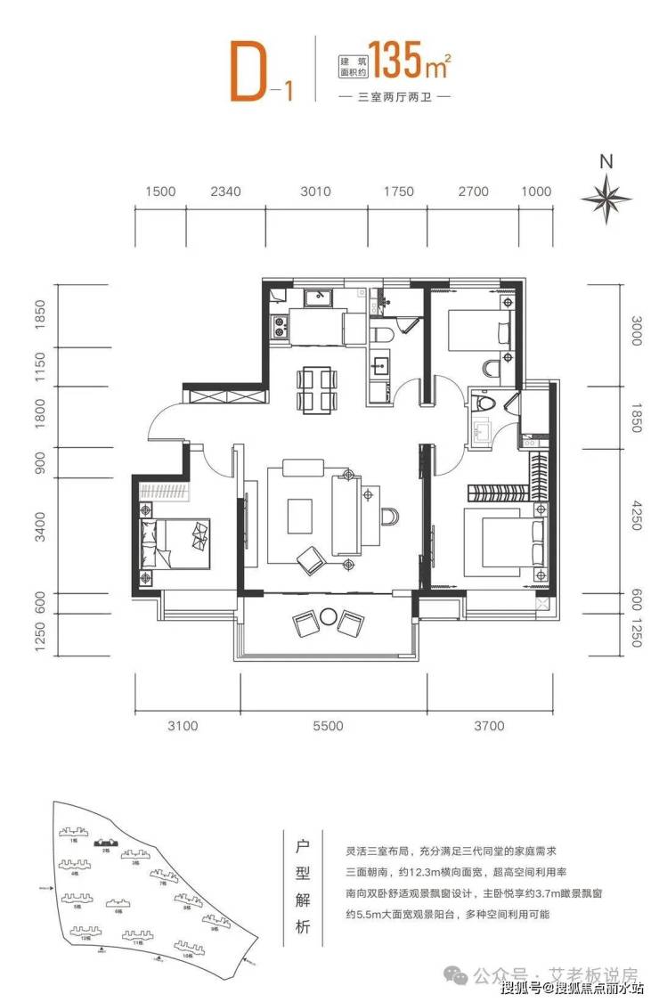 优点:三叶草的户型,三面朝南,5.5m横厅设计,同时能保障南向卧室开间,全明设计,通透舒适。