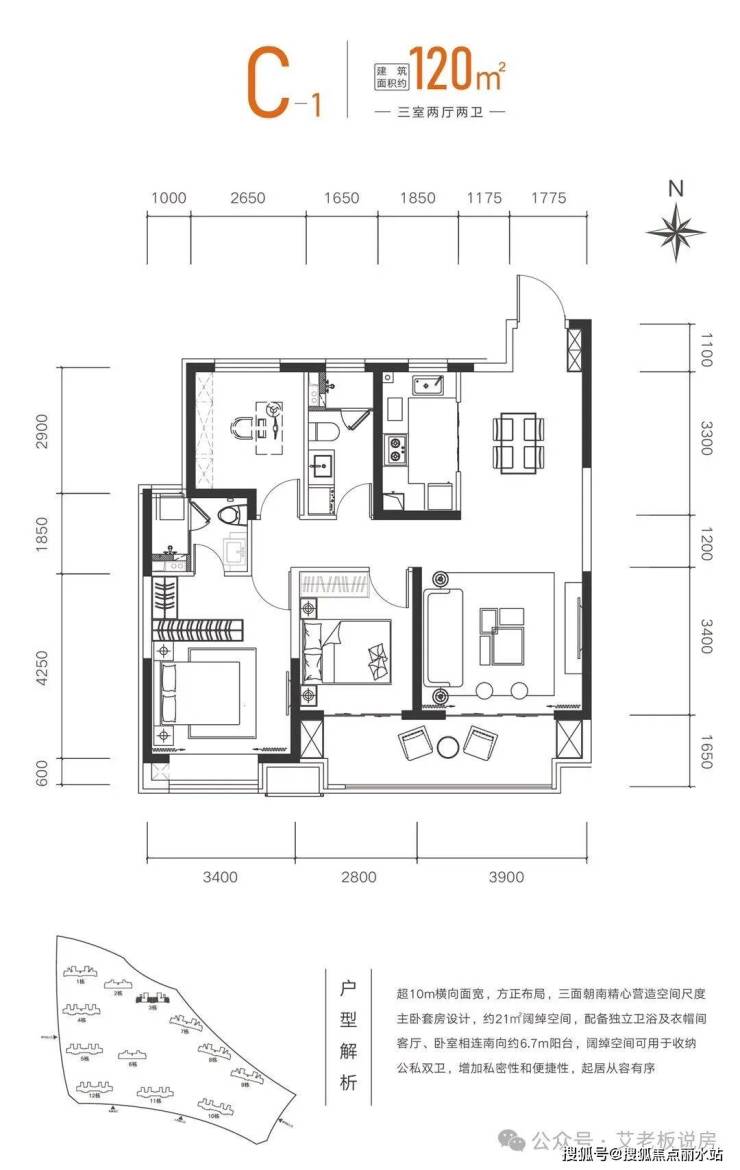 PS:大家可根据户型图左下角上的标识位置,来匹配此户型所在楼层平面的位置。