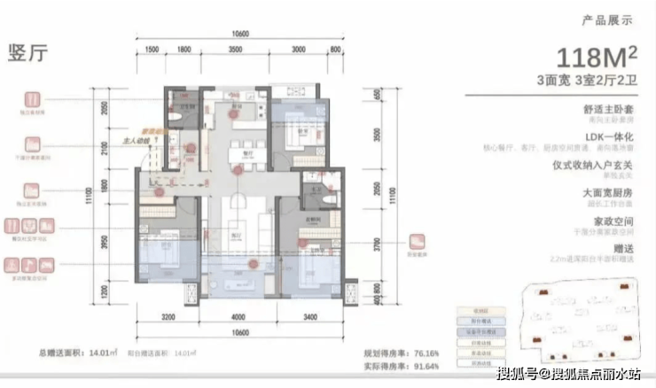 最小118㎡三房起步,最大194㎡四房,特别适合要结婚的小年轻或者二胎家庭。