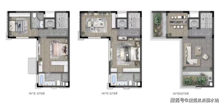 别墅建面100平户型2(平层2-顶层)