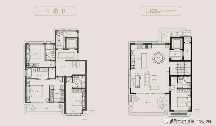 | 天阳·湖山丽舍建面约212㎡下叠户型图| 天阳·湖山丽舍建面约220㎡上叠户型图