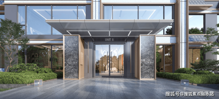 项目外立面采用的真石漆+铝板线条的设计,搭配LOW-E玻璃以及全景落地窗,产品在整个片区是独一档的存在