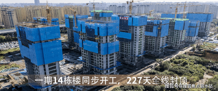 首期14栋楼同步开工,227天全线封顶,用速度见证实力。