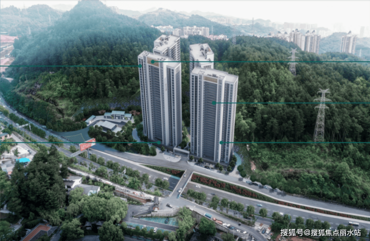 住宅部分靠内,整体有抬高形成一个较为独立纯粹的空间,可看出由于地形高差较大,住宅部分规划建设有观光电梯,方便业主出行。