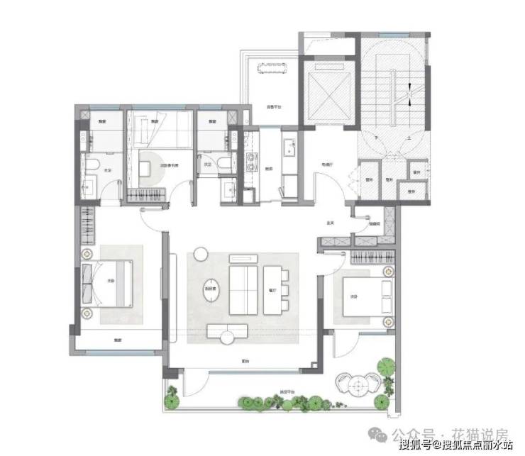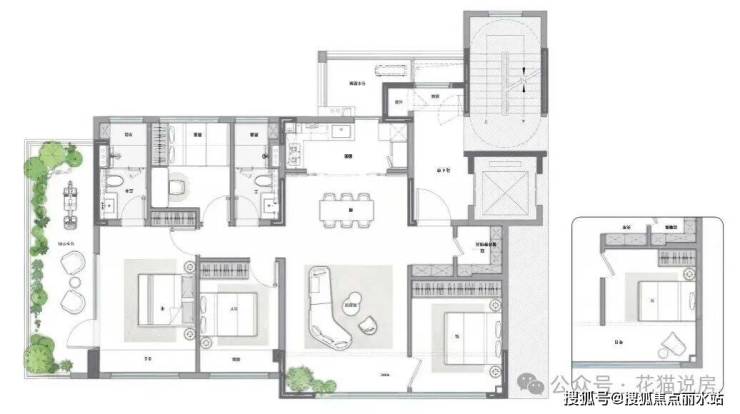 三重庭院园林,空中、地面、下沉三重庭院错落分布,在家里可享受空中花园,在社区内可享受景观园林,往下走还有下沉式庭院。