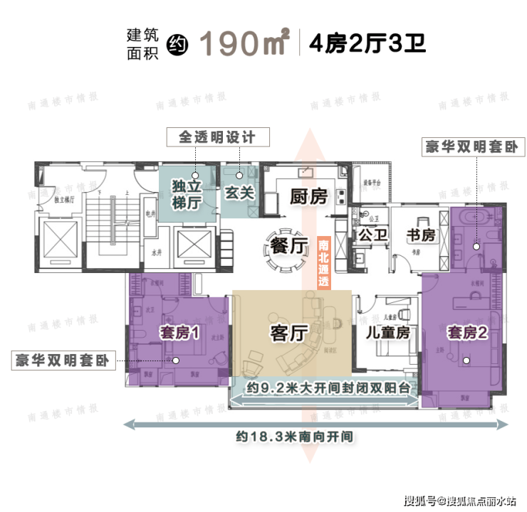 ②、约18.3米南向开间,比3辆劳斯莱斯的横排尺度还要大!超9米南向270°景观阳台,尺度感极强。