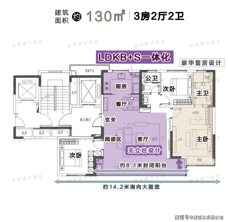 ②、约14.2米南向面宽,约8.1米的巨幕阳台,大横厅没有设计立柱,这空间感,这视野、这采光,绝了!
