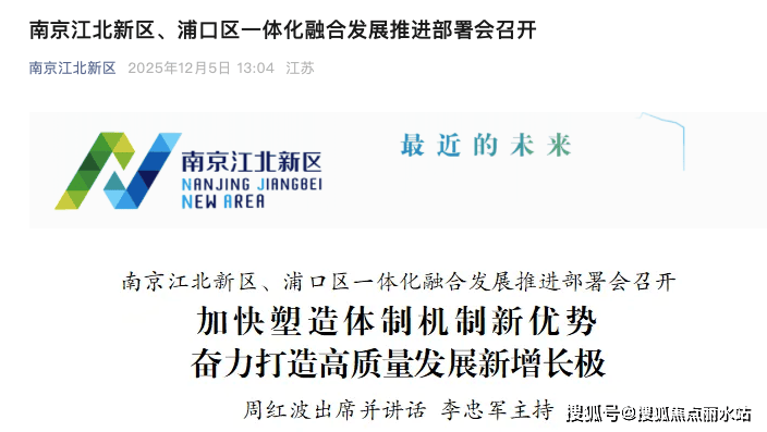今天最重磅的消息:江北新区、浦口区官宣一体化融合发展。统一领导、一套班子、一体化运行。在空间体系、产业布局、枢纽建设、城乡统筹等方面,统一规划、一体实施!这对于整个江北而言,是重大利好。
