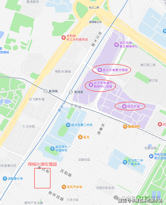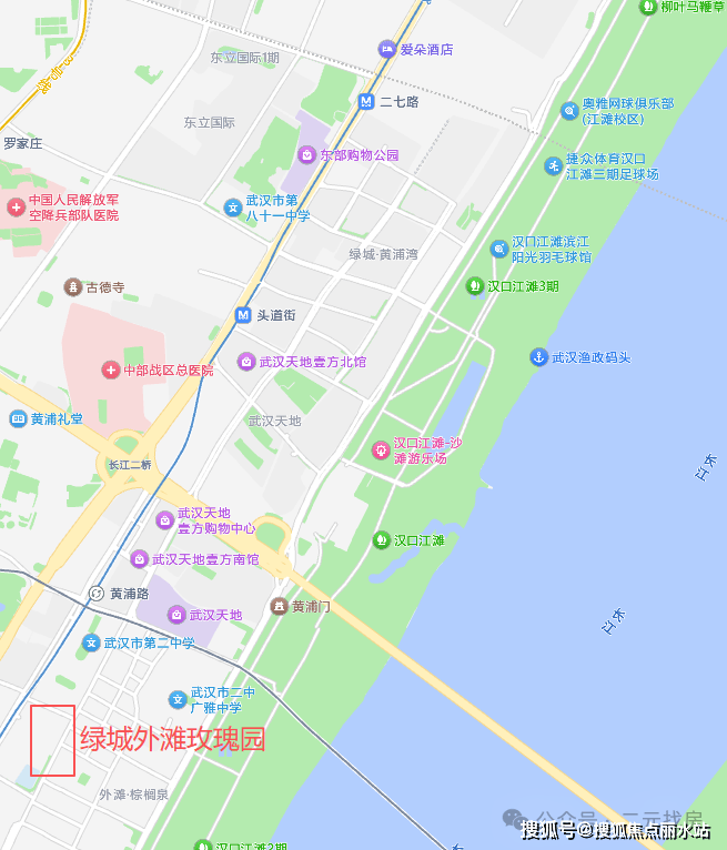 绿城外滩玫瑰园位于江岸区中山大道与新兴街交汇处,属于二七滨江板块,地段上属于内环,也是武汉顶级的豪宅区。