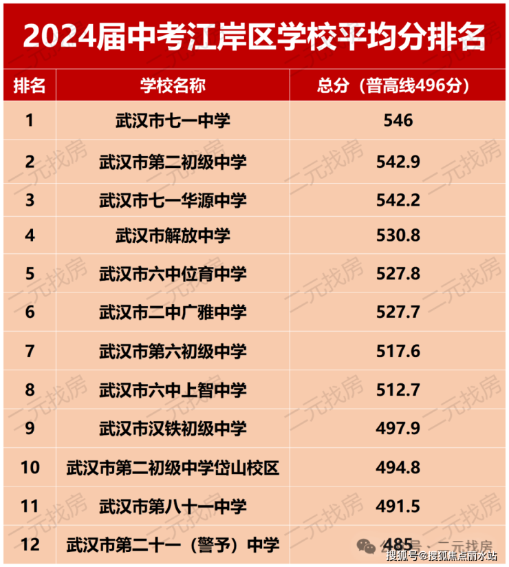武汉二次在2024年中考平均分江岸区位居第二,仅次于七一中学,普高率也有76%。