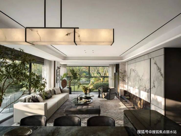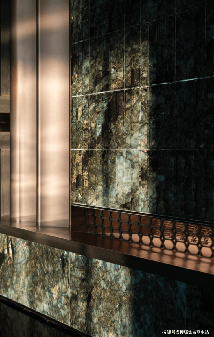 定制的蓝翡翠奢石、苏式转译的专属拼花地砖、手工打磨的透光大理石以及精选的安哥拉黑高奢水景等细节,无不透露出对品质生活的极致追求。