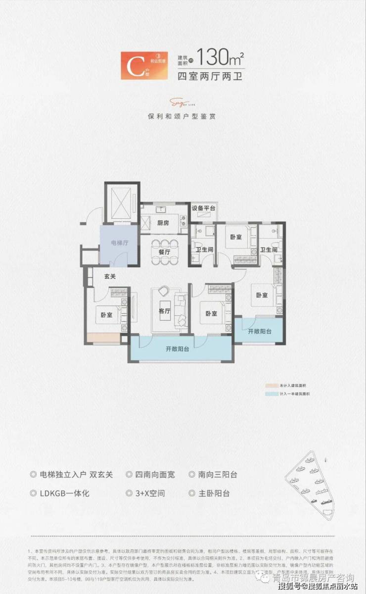 这个户型也是经典的元宝户型,采用四南向、超大阳台、大宽厅加LDKBG的创新设计,私密性和尊贵感十足;市面上常规的套四户型,大部分只是南向两个卧室北向两个卧室,而保利和颂却做到了南向三个卧室,一致朝南横向铺排,非常罕见,每个空间都能享受阳光。
