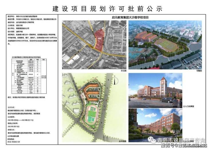 开年又有利好!2月9日,青岛规划局发布了《关于启元教育集团大沙路学校项目规划方案进行社会公示的通告》。通告显示,启元大沙路学校位于市北区大沙路以北,规划长沙路以西,规划桐柏支路以东,而这个位置旁边就是保利和颂项目,而这个项目是启元教育集团招生范围内唯一的即将发售的新房。按照相关规定,学校将与小区同步交付。