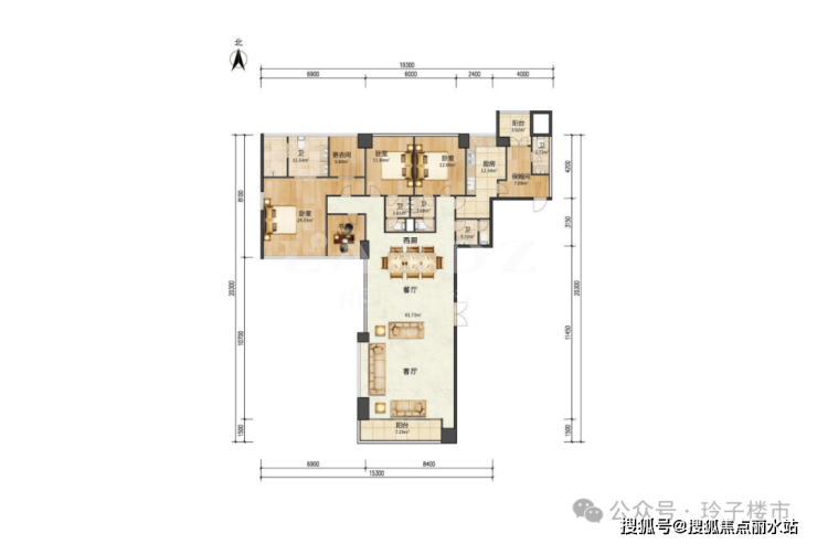 一期由3栋高层住宅组成(A栋36层,B栋41层、C栋33层),主要户型是298-600㎡的4-8房。