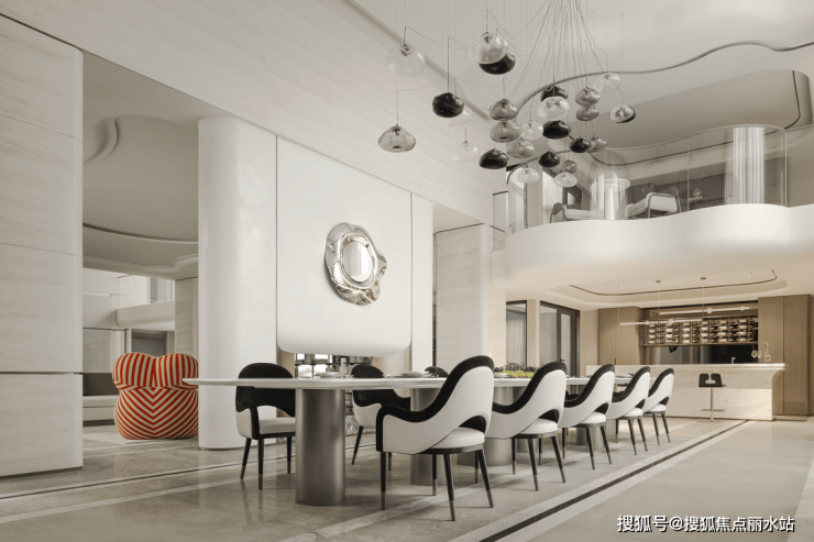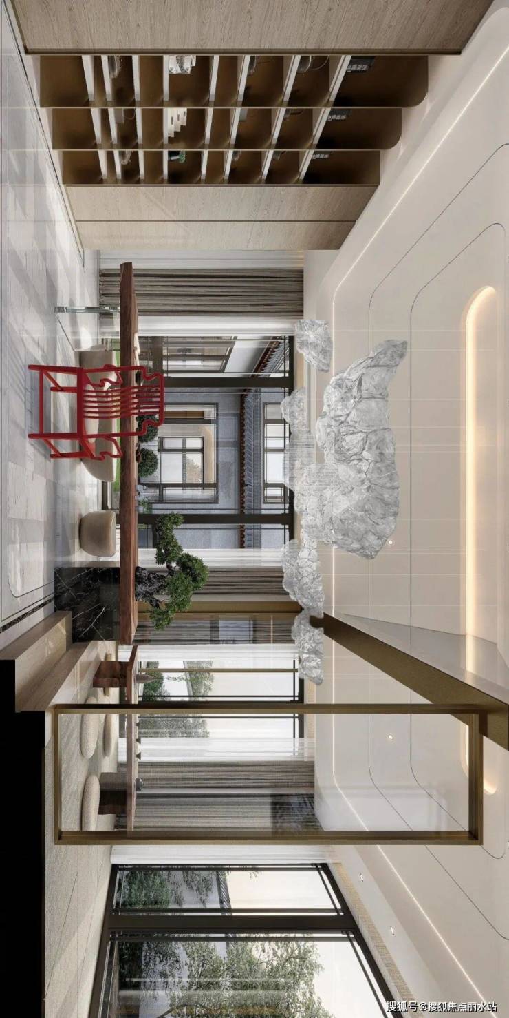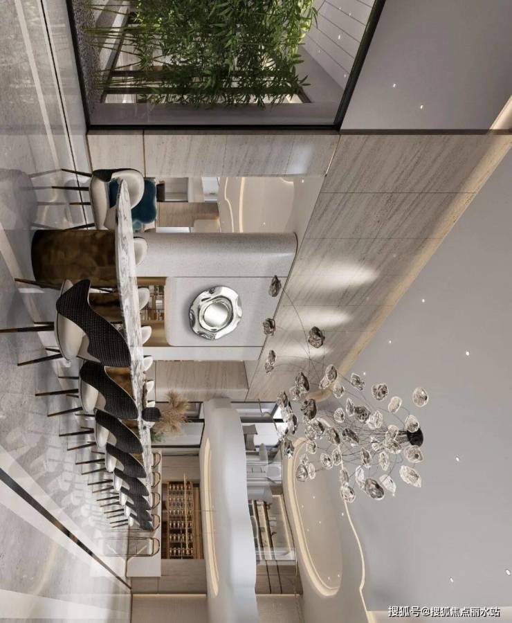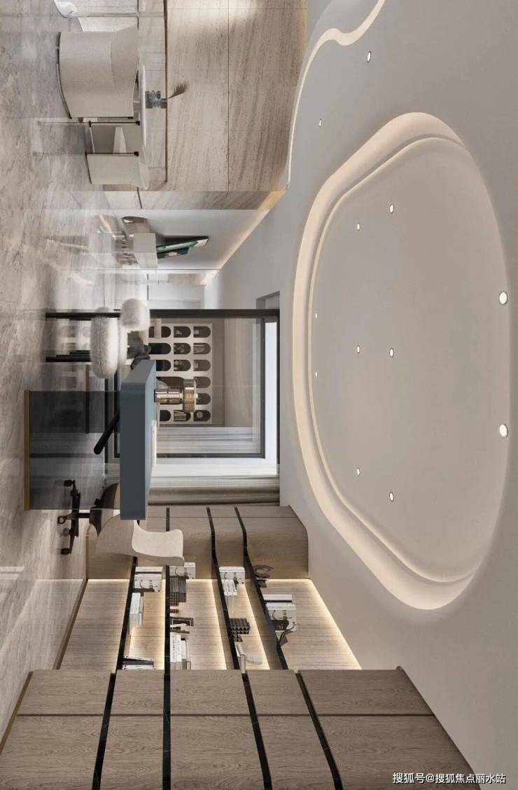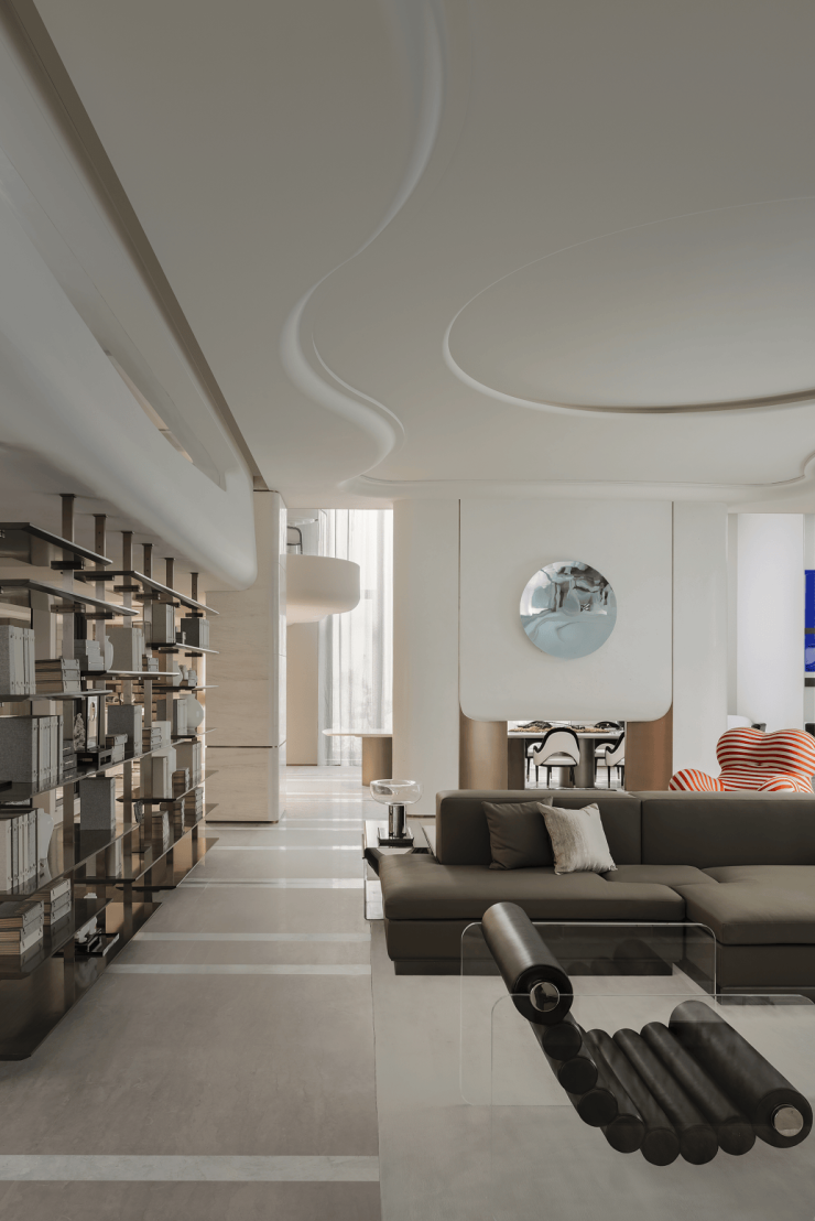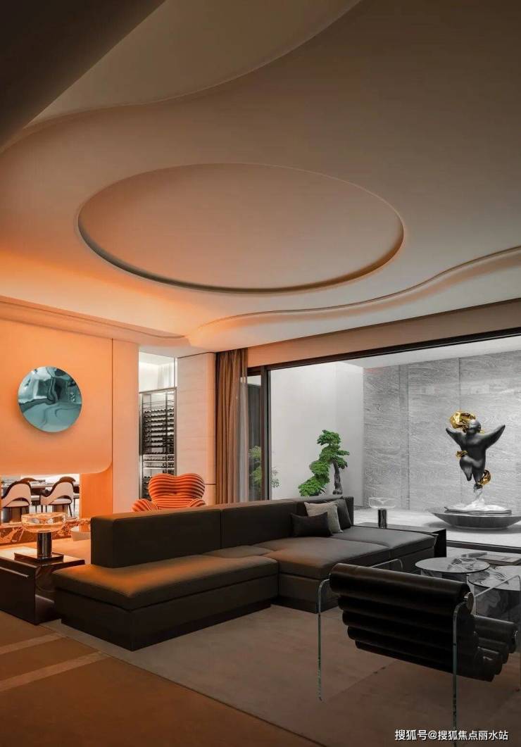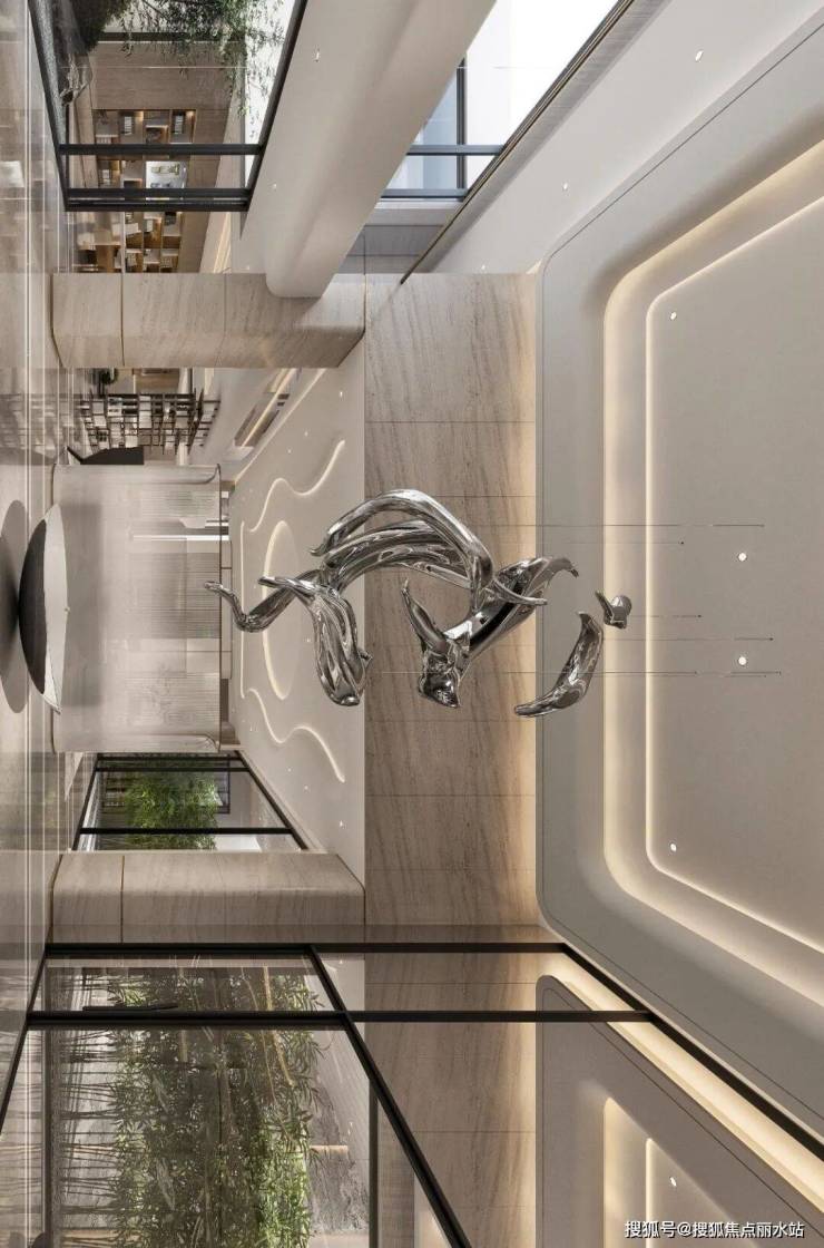 东西方文化关于风与水的想象被融合、物化为两尊雕塑,它们安放于地下,赋予其「标题性」,使之反客为主,由昏暗的冗余空间转化为整个别墅的诗意核心。
