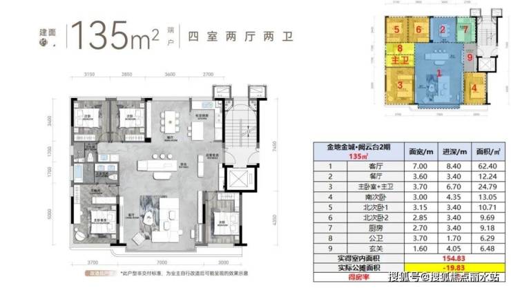 四室两厅两卫,“偏四叶草”格局,7米的超大客厅开间,有独立的客厅位。室内中央可放置超大茶台,135平均排列在边户,能兼具主卧的转角双向观景窗。