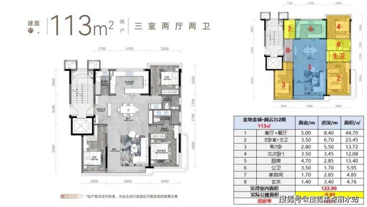 户型绝对是阙云台2期的重头戏,实际上去年1期的户型就设计的很惊艳,基本达到100%得房率,2期在此基础上进行了进一步升级:同样的3个面积段:113平、125平、135平;除洋房顶底外,标准层精装修交付,改善型产品定位。