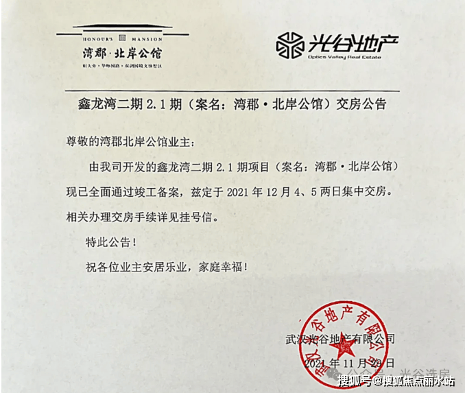 湾郡北岸公馆的开发商是具有房地产一级开发资质的国有企业武汉光谷地产有限公司。