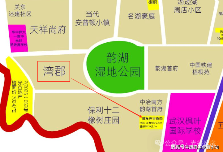 前段时间光谷地产拿下了湾郡的西侧P(2025)052号地块,楼面价7024元/平,三面临湖,预计也是会做叠拼别墅类产品,比湾郡视野更加开阔,一线临湖。