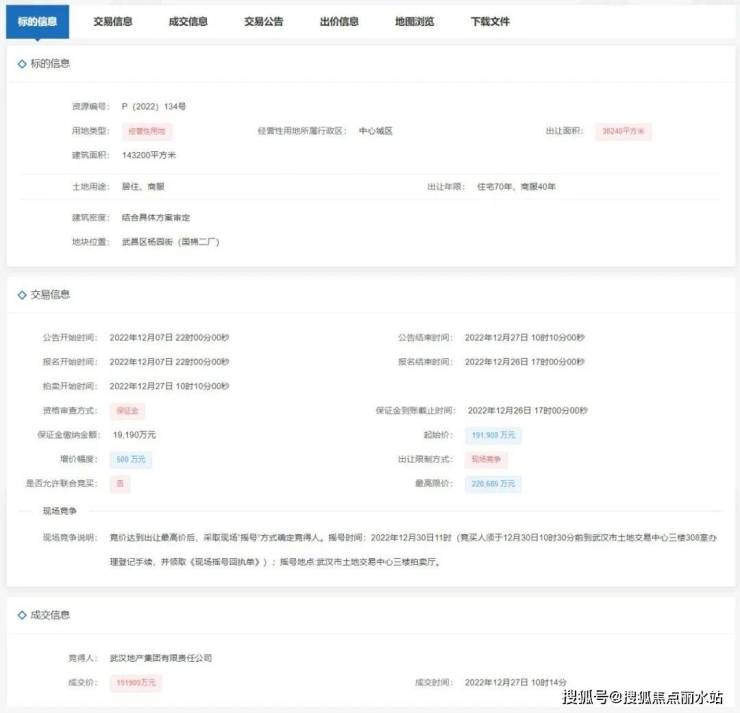 该项目即P(2022)134号地块,也就是武昌区杨园国棉二厂地块,2022年12月27日该地块由武汉地产集团有限责任公司底价拍得,成交楼面价约13400.8元/平。